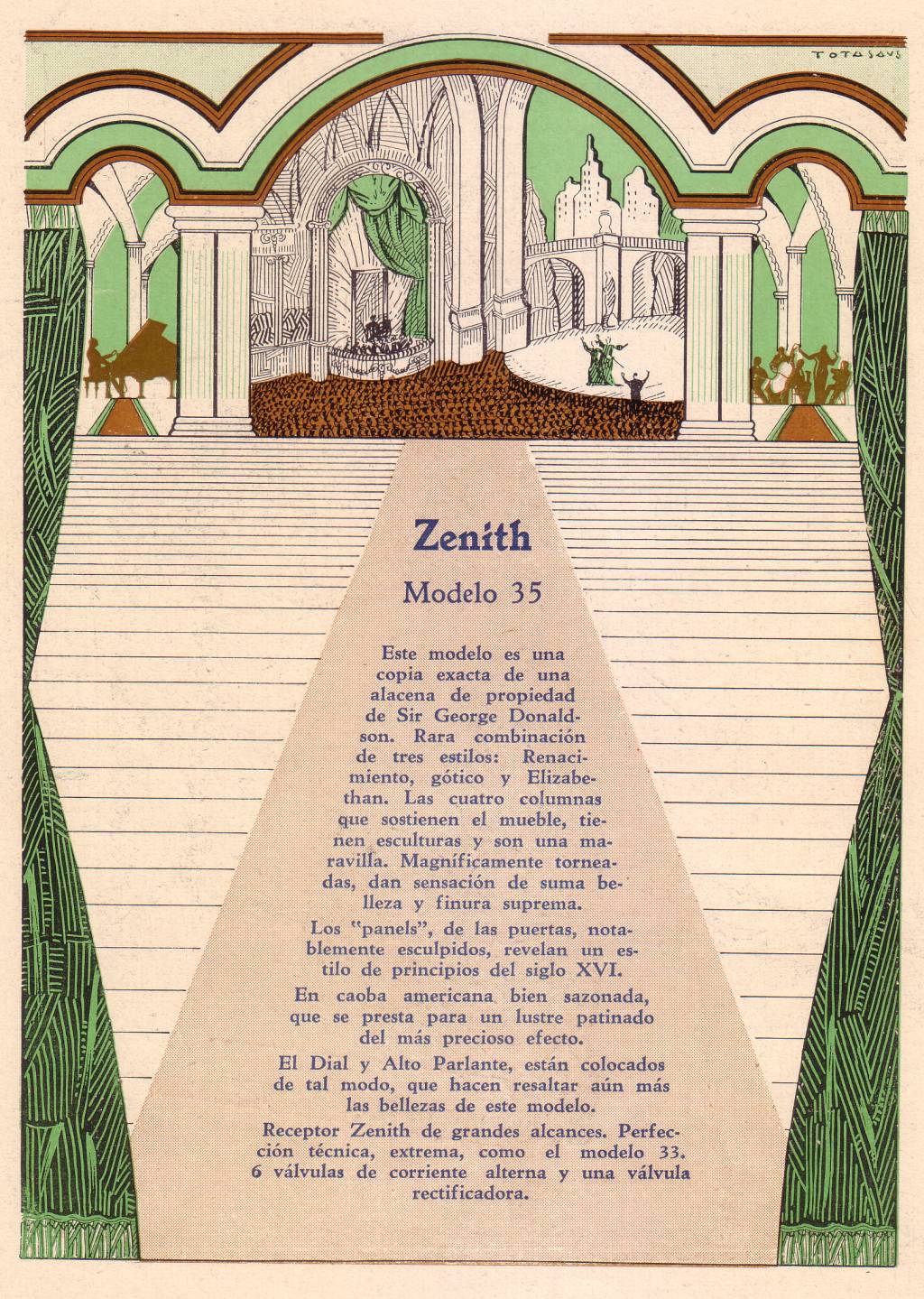Dear fellow collectors: I present here a 1929 Zenith catalog, designed for the marketing of models in Argentina and Uruguay. This catalog belongs to the Max Glucksmann establishment, which was also into movies and recorded music.