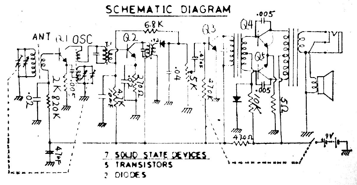Copyright (natürlich...) Walt Disney Productions. Hersteller/Vertrieb von: Dist. Intoport Development Co. Inc. New York 10010. Senderwahl zwischen Nase und linkem Ohr, Lautstärke und Ein-Aus zwischen den Ohren. Das Innere zeigt eine einfache Superschaltung mit 5 Transistoren und 2 Dioden, Schaltung innen in Briefmarkengrösse eingeklebt. Die Rückseite ist graviert: Dist. by Philgee International  Made in Hong Kong