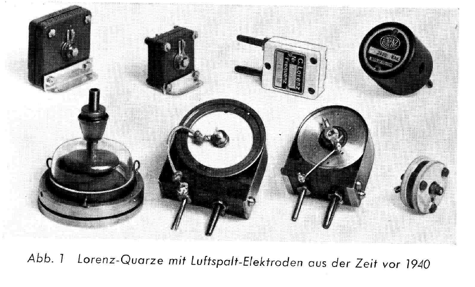 Hier im Forum sind in der Vergangenheit schon öfters Fragen nach unbekannten Bauelementen aufgekommen. In einigen Fällen handelte es sich um Schwingquarze. In den SEG-Nachrichten, Jahrgang 1956, wurden die zwei nachfolgenden Bilder veröffentlicht, die Bauforemen von Schwingquarzen der Fa. Lorenz aus den Jahren vor 1940 und von 1940 bis 1945 zeigen.