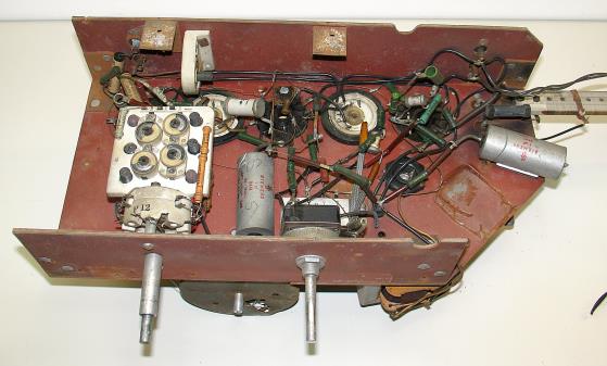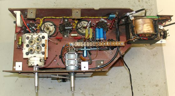 Die U-Röhren, der Skalenhintergrund und Skalenzeiger fehlten. Für die Befestigung des Chassis im Gehäuse waren nur zwei Winkel vorgesehen obwohl im Gehäuse 4 Bohrungen vorhanden sind. Das war natürlich mechanisch völlig instabil. Die Verdrahtung war ein schmutziger zerfledderter Drahtverhau.