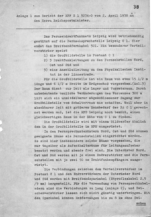Die Planung des Fernsehdrahtfunknetztes Leipzig 1938