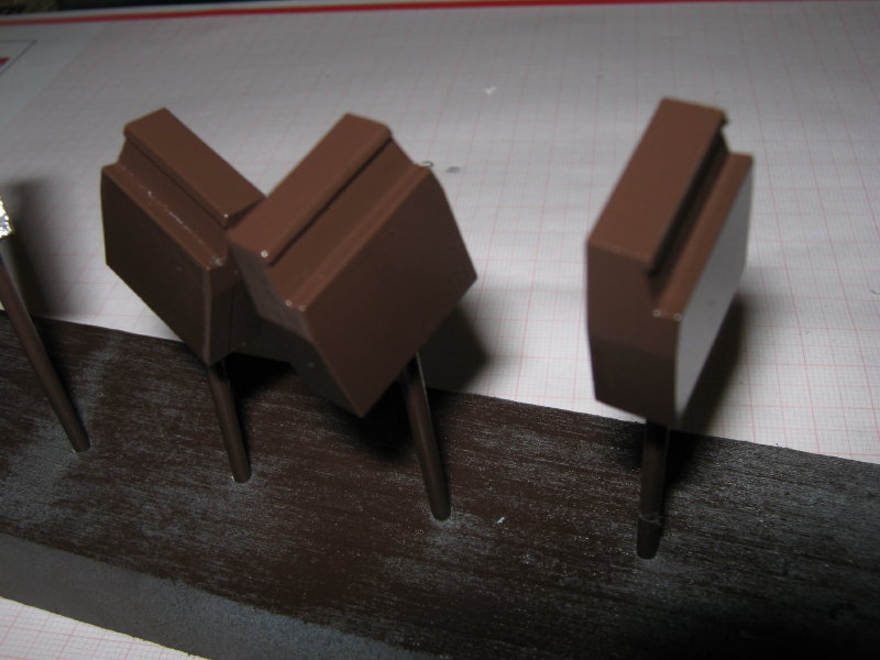 Zum Spray-Lackieren habe ich eine Fichtenlatte 300x40x18 mit 8 geköpften Nägeln versehen (siehe Anlage).Darauf kann man die Teile zum Lackieren und Trocknen aufstecken ohne sich die Finger zu besprayen.
