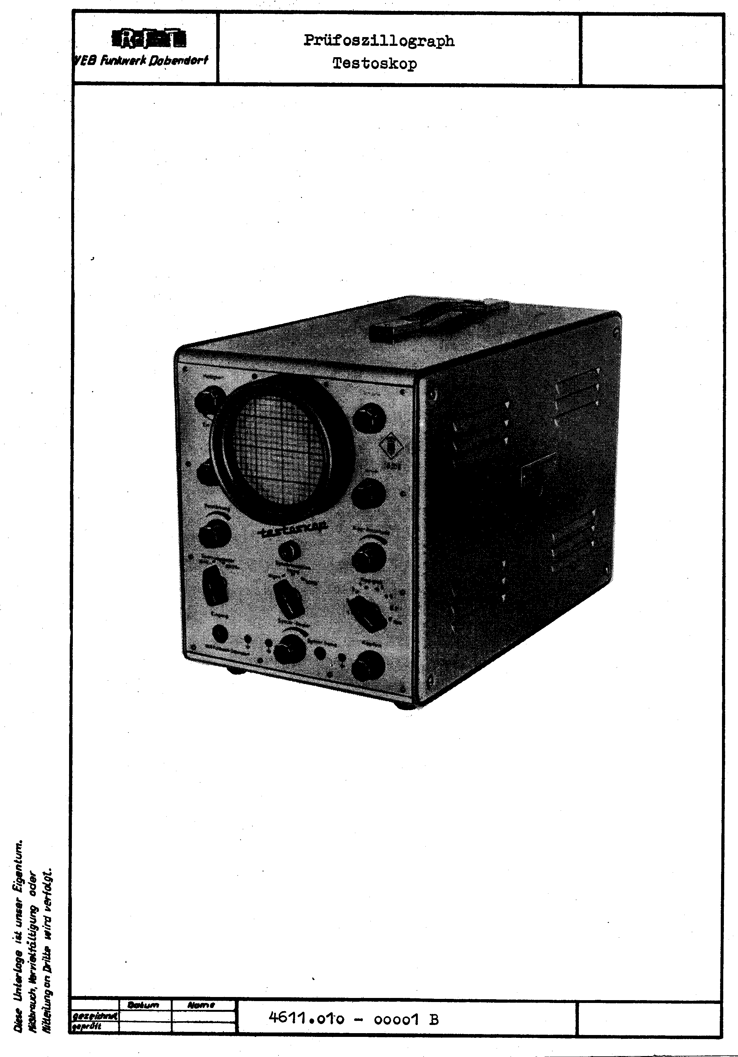 Dieser Artikel betrifft das Modell: Fernsehprüf-Oszillograph Testoskop (Funkwerk Dabendorf (VEB); Dabendorf (Ostd.))