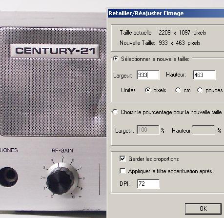 Pour finir, vous changez la taille de la photographie à la taille désirée, pour les images des postes radios ça serait une largeur maximale de 933 pixels ou une hauteur maximale de 700 pixels pour les images de forme "portrait".