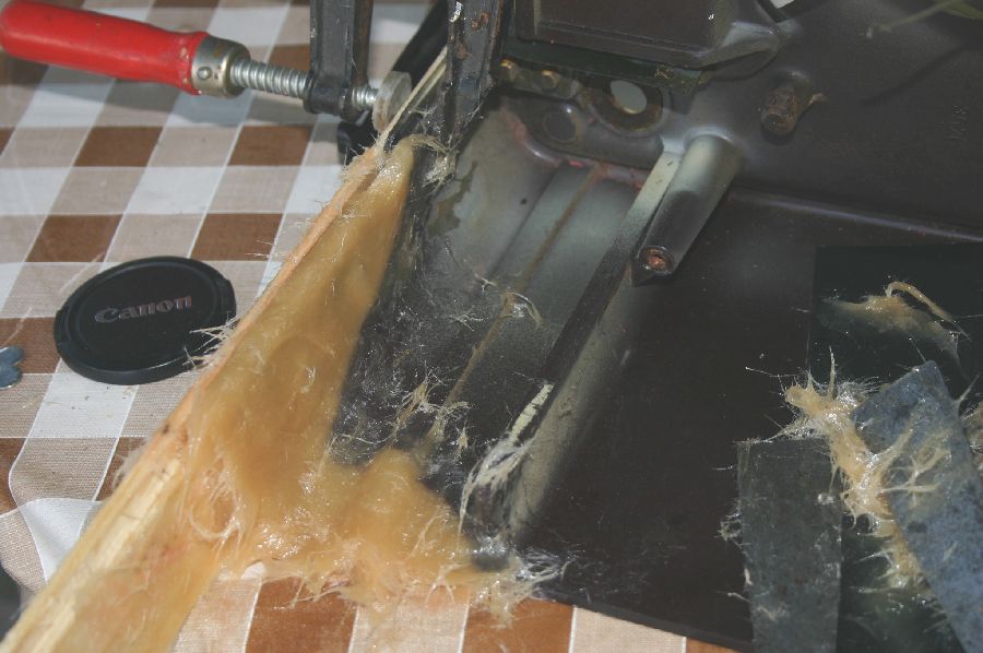 Amassa-se a fibra de vidro, seguindo as instruções do fabricante, com uma quantidade necessária para encher a zona com falta de baquelite. Aplica-se com o auxílio de duas espátulas e deixa-se secar muito bem, (ler instruções do fabricante da fibra aplicada sobre o tempo de secagem e de se poder manusear). Cuidado trabalhar em local bastante arejado.
