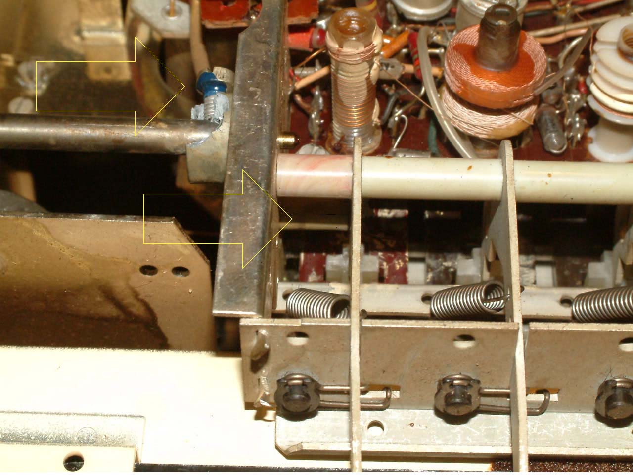 Thanx for responding. I already tried something very similar. The metal was simply too degraded. If I can't find a part, which seems likely, I will try to build one. As a stopgap, I have attached some fishing line to the clutch and I tug on it whenever I want to tune an FM station. Not a very elegant solution but it works. :-)