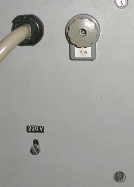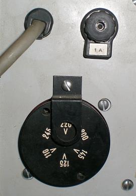 Auf der Geräterückseite befindet sich der Netzspannungswähler. Bei Geräteversion 06 nicht zu übersehen, bei den späteren Versionen fällt er kaum auf.