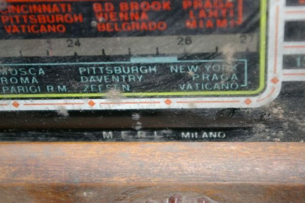 Egregi signori, non sono propriamente un collezionista di radio d'epoca, però mi piacciono gli oggetti d'epoca. Ho rinvenuto l'apparecchio di cui allego le foto, ma non sono riuscito ad identificarlo tramite il Vs sito (del quale comunque ho apprezzato la chiarezza e la completezza dei dati). Non vi sono etichette di riferimento, a parte una scritta in basso a destra nella foto n°3, nella quale mi sembra di leggere "MIAL MILANO". Dal Vs sito però pare che la ditta MIAL non abbia mai costruito radio. Vorrei restaurarlo in quanto mi sembra ancora in buone condizioni, ma, pur avendo le conoscenze tecniche, non sono un esperto di radio d'epoca e senza schemi elettrici non sono in grado di metterci le mani. L'apparecchio riceve in onde medie e in tre gamme di onde corte e non è funzionante. Spero che possiate essermi di aiuto e Vi ringrazio in anticipo per la collaborazione sperando inoltre che quanto Vi invio possa essere utile al Vs archivio. Rimango inoltre a Vs disposizione per ogni altra informazione possiate desiderare. Distinti saluti
