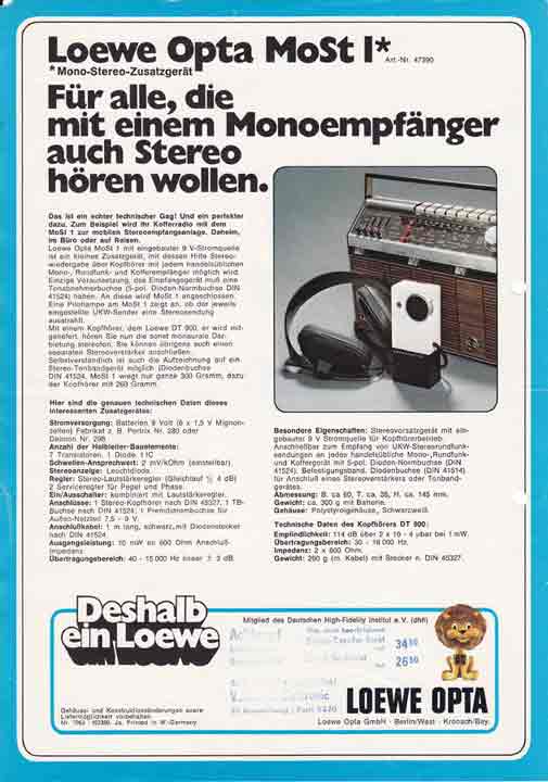 Das war das "Non Plus Ultra" damals. Ich habe nächtelang mit dem Kopfhörer gehört - Kunstkopf - Aufnahmen" wurden damals im Hörfunk gesendet. Ich habe mir dann ein Splitter-Kabel gebastelt und in meinem Zimmer zwei alte Röhrenradios aufgestellt um über die TA-Buchsen das Stereo-Signal an die beiden Geräte zu liefern. Es war einfach ein toller Sound damals, den wir bisher von einem Radio nicht kannten !
