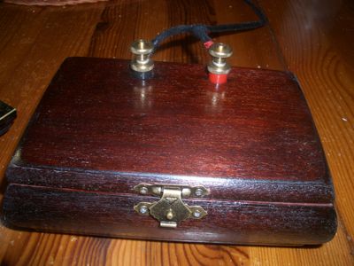 Zur farbigen Kennzeichnung von Adern z.B. für Batterieanschlüsse umwickele ich die Enden ca. 10mm mit farbigem Garn der benötigten Farbe. Als Beispiel sei hier ein Batteriekästchen gezeigt: