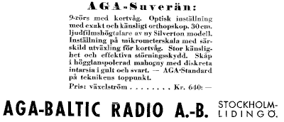 Dieser Artikel betrifft das Modell: Suverän 35 AH-980 (AGA and Aga-Baltic Radio AB; Sweden) Dieser Akrtiel betrifft den Hersteller: Zur Firma