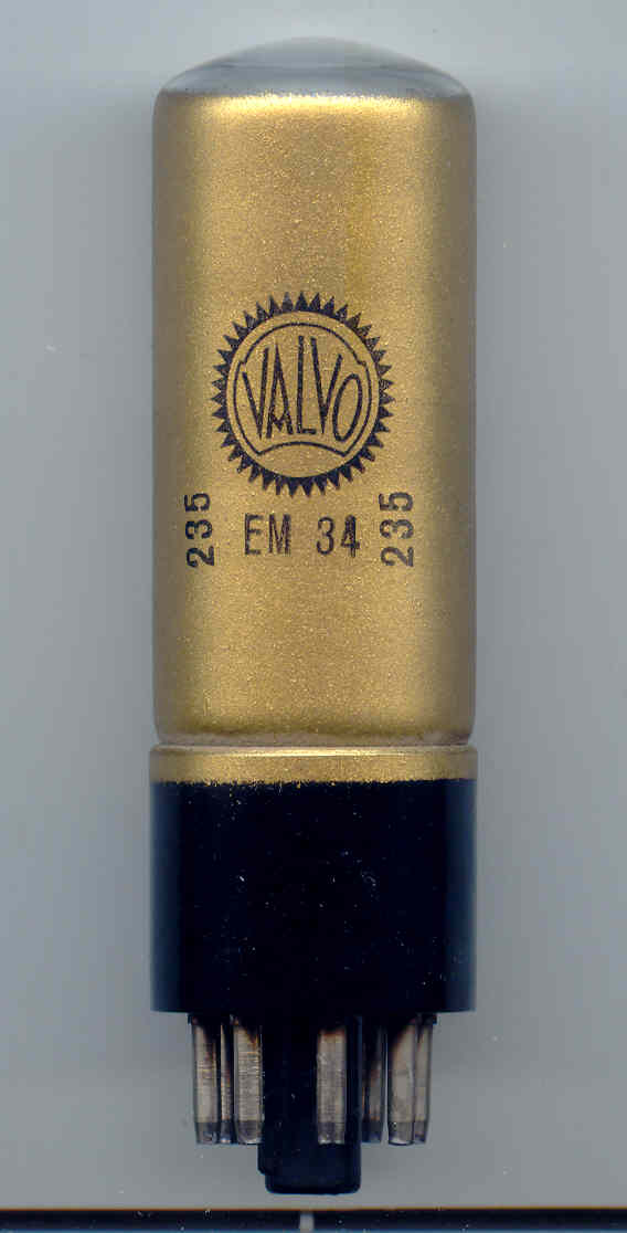 Eine gut funktionierende EM 34 dürfte nur sehr schwer aufzutreiben sein. Falls doch können Sie sich auf horrende Preise freuen. Einfacher und preiswerter dürfte ein Umbau auf einen Ersatztyp sein. (Siehe Röhrenbild der EM 34). Das etwas andere Leuchtbild läßt sich verschmerzen.
