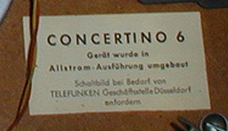 Die mir zur Verfügung stehenden Großhandelskataloge des Jahrgangs 1955/56 führen das Modell nicht. Auch im Folgejahr gibt es vom Concertino nur eine Wechselstrom-Ausführung. Falls das Gerät oder ein Schema vorliegt, sollte es als neues Modell angelegt werden.