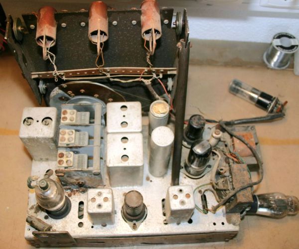 Now being like this, leaning me, that it will be a radio manufactured in the it USA, in fact can also see in the picture it a condenser electrolytic of 40 MF manufactured in the it USA. And ending will be a Model 415KR. Does agree with me?