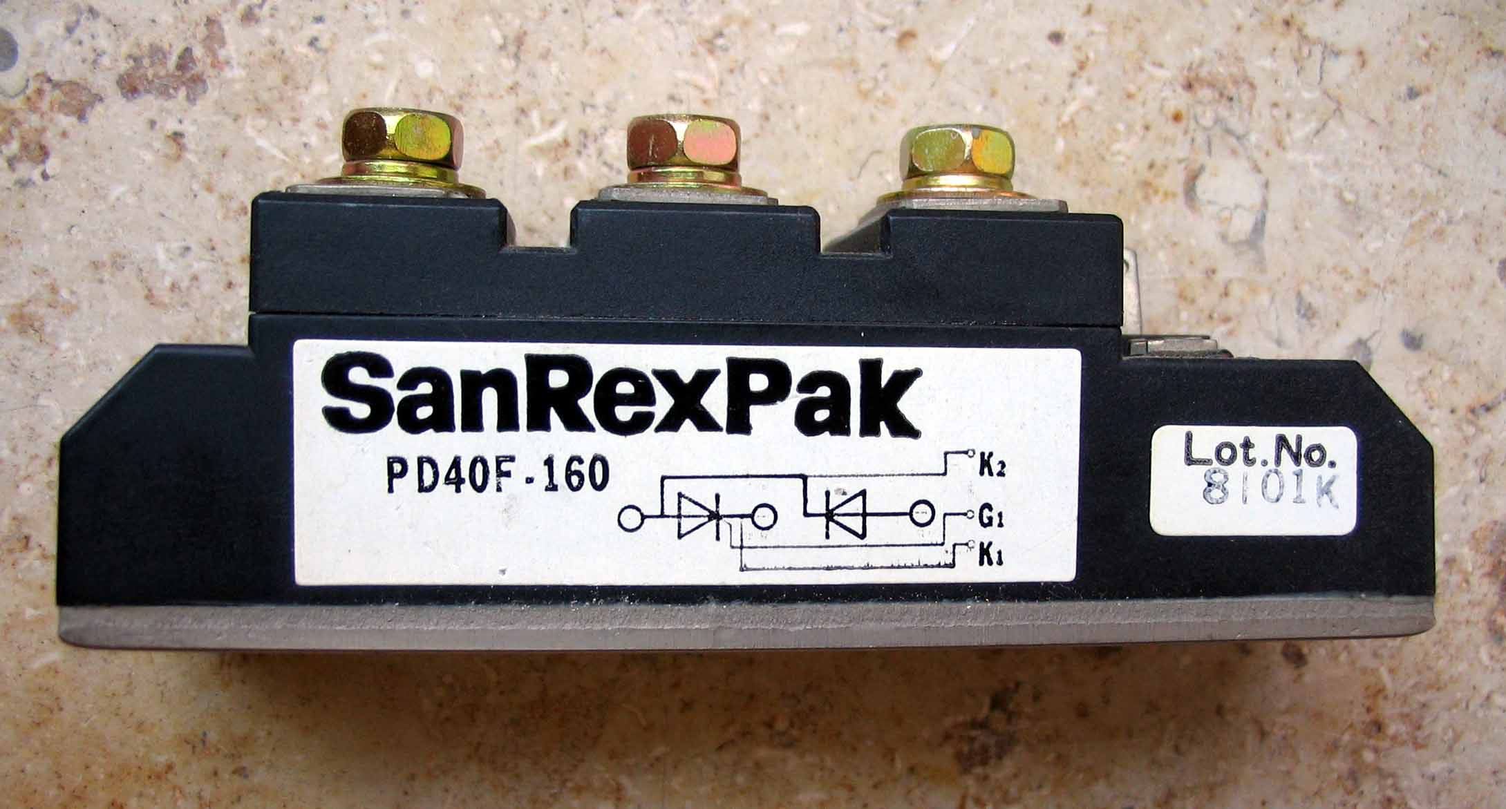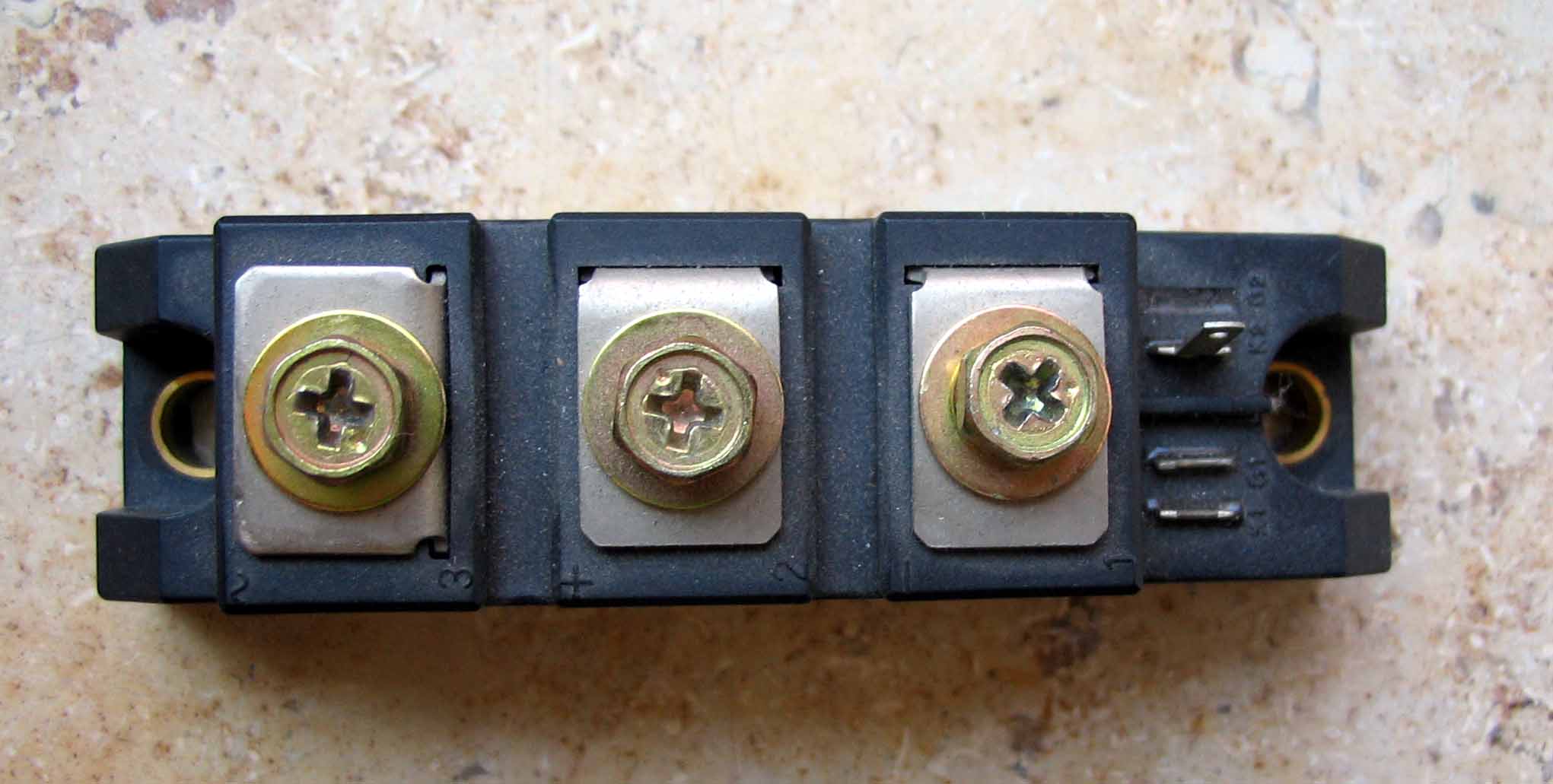 Wie auf dem aufgeklebten Schaltbild ersichtlich, befindet sich ein Thyristor und eine Diode darin.