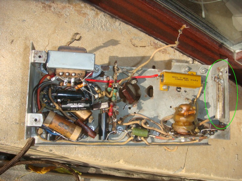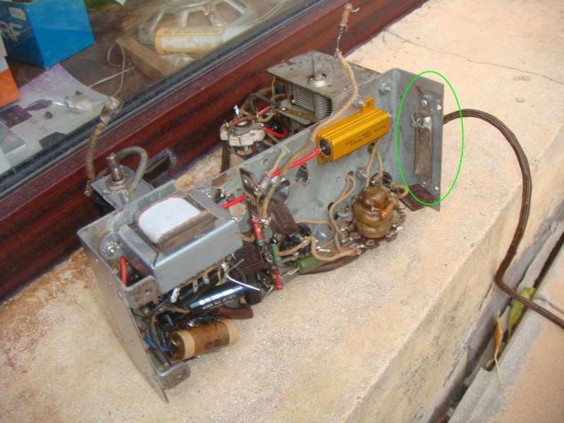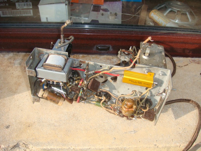 Under the chassis , fixed on the wall with caps, is a wire wound resistance , wich, unfortunately is destroyed. Does somebody knows the value of this resistance and the wats, also its position in the drawing?