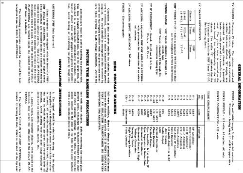 - 24" b/w TV with US standard VHF Tuner Channels 2 thru 13, 14 thru 83 UHF.
