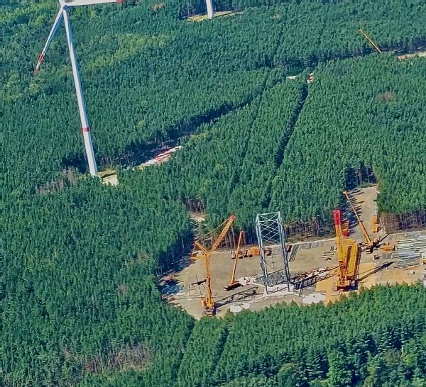 Die Grundsteinlegung für das mit einer Nabenhöhe von 300 m konstruierte Windrad,dessen Rotorblattspitzen 365 m erreichen ( vergleiche Berliner Fernsehturm 368 m - das noch höchste Bauwerk in Deutschland ) erfolgte am 19.September 2024.