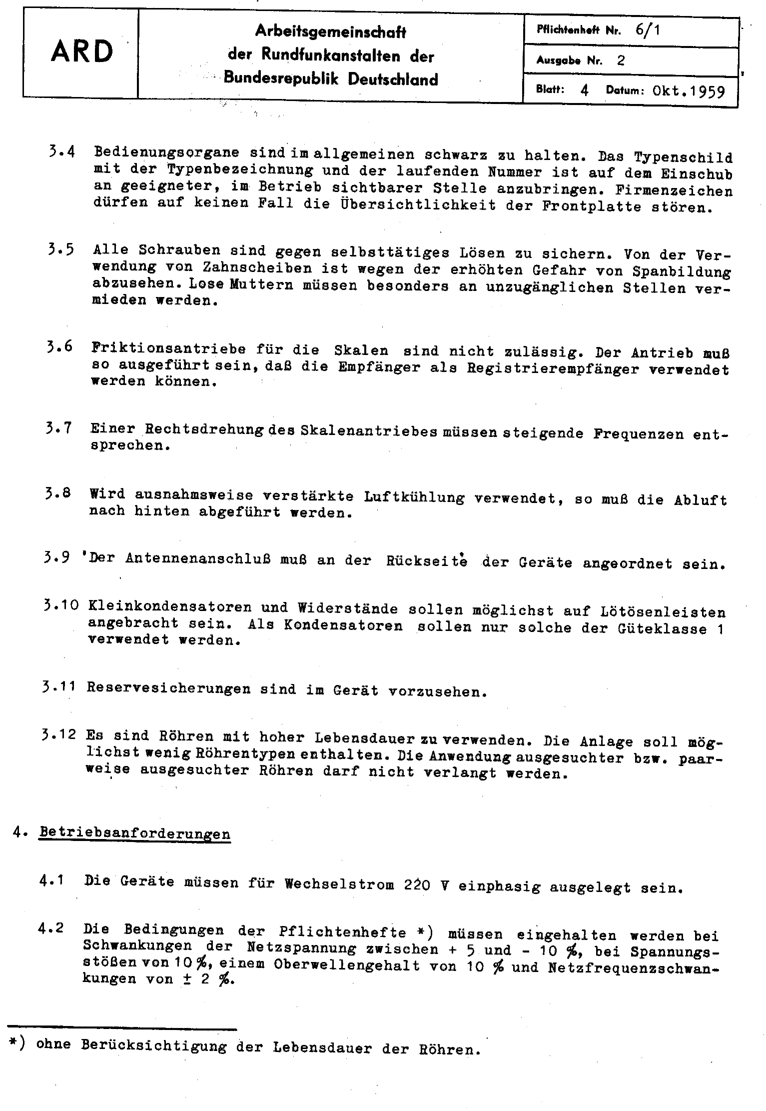 Hier ist das Pflichtenheft 6/1 "Empfangsanlagen allgemein" und das Pflichtenheft 6/2 "UKW-Ballempfänger und Fernseh-Ton-Ballempfänger",beide vom Oktober 1959:zu finden: