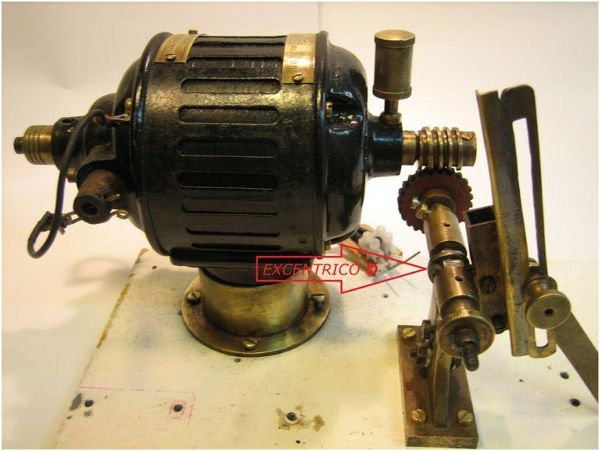 Do excêntrico m nasce o movimento de oscilante que move as peças h,p,n,k e j (estas duas ultimas k e j)são suportadas por dois veios fixos em duas peças em forma de L nos seus extremos ,
