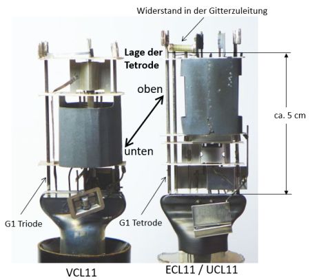 In den Röhren ECL11 und UCL11 befindet sich im Innern der Röhre ein Widerstand in der Zuleitung zum Steuergitter der Endstufe.