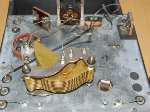 Schon das Äußere lässt Zweifel aufkommen, ob die beiden Einstellknöpfe für Abstimmung und Heizung wirklich Telefunken-Produkte sind, Die rechts oben zurückgebaute zweite Buchse, die offensichtlich einmal dort existierte, und das Telefon-Schild dort sind nicht "Original Telefunkon K"; auch nicht der nachträglich aufgepflanzte Spulenkoppler. Der hat sicher seinen Sinn für einen Amateur damals gehabt für die Erweiterung des Frequenzbereiches - aber original ist das doch nicht!