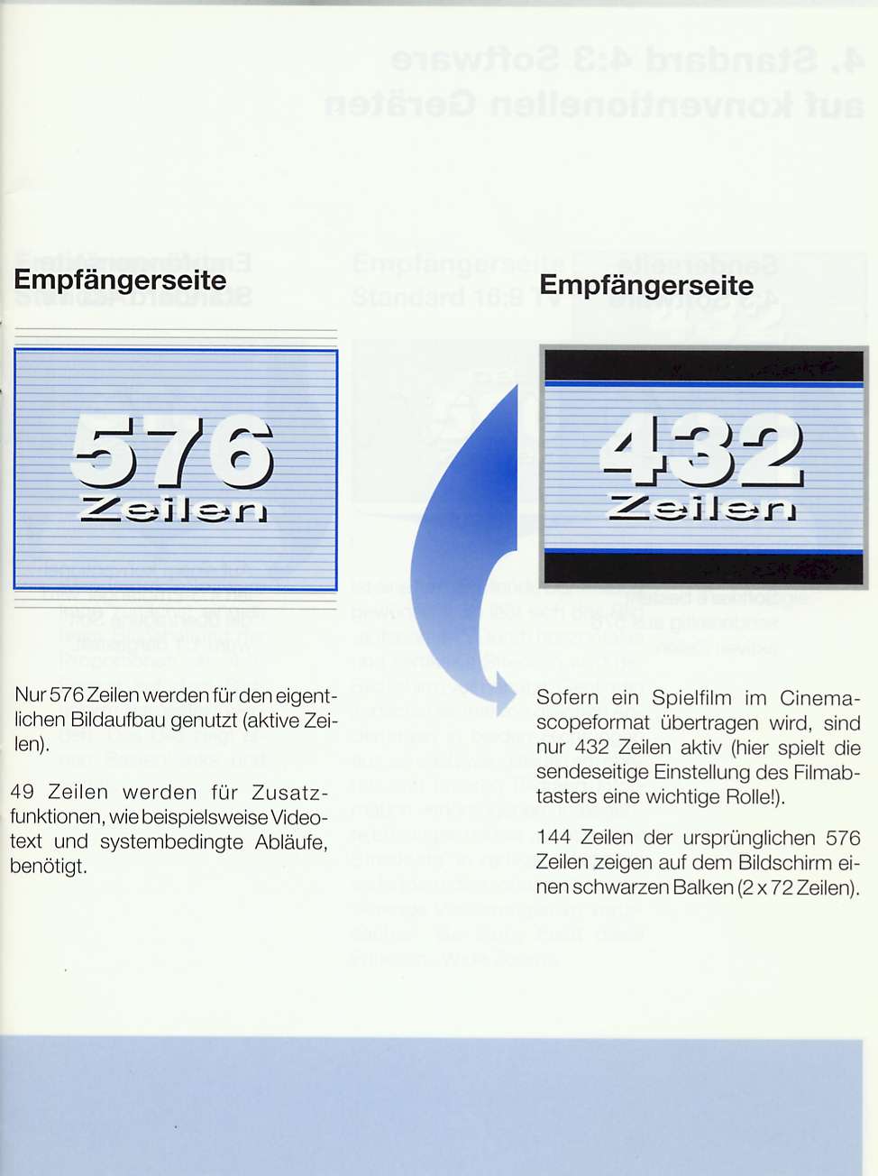 Zentnerschwere 16:9 taugliche Bildröhrengeräte mit eingebauten PAL Plus Decodern zauberten aus den schwarzen Balken (= 144 Helperzeilen) wieder eine Bildinformation zurück, die jetzt wieder ein netto 576 Zeilen Vollbild ergab während der 4:3 Zuseher nur seine 432 netto Zeilen hatte.