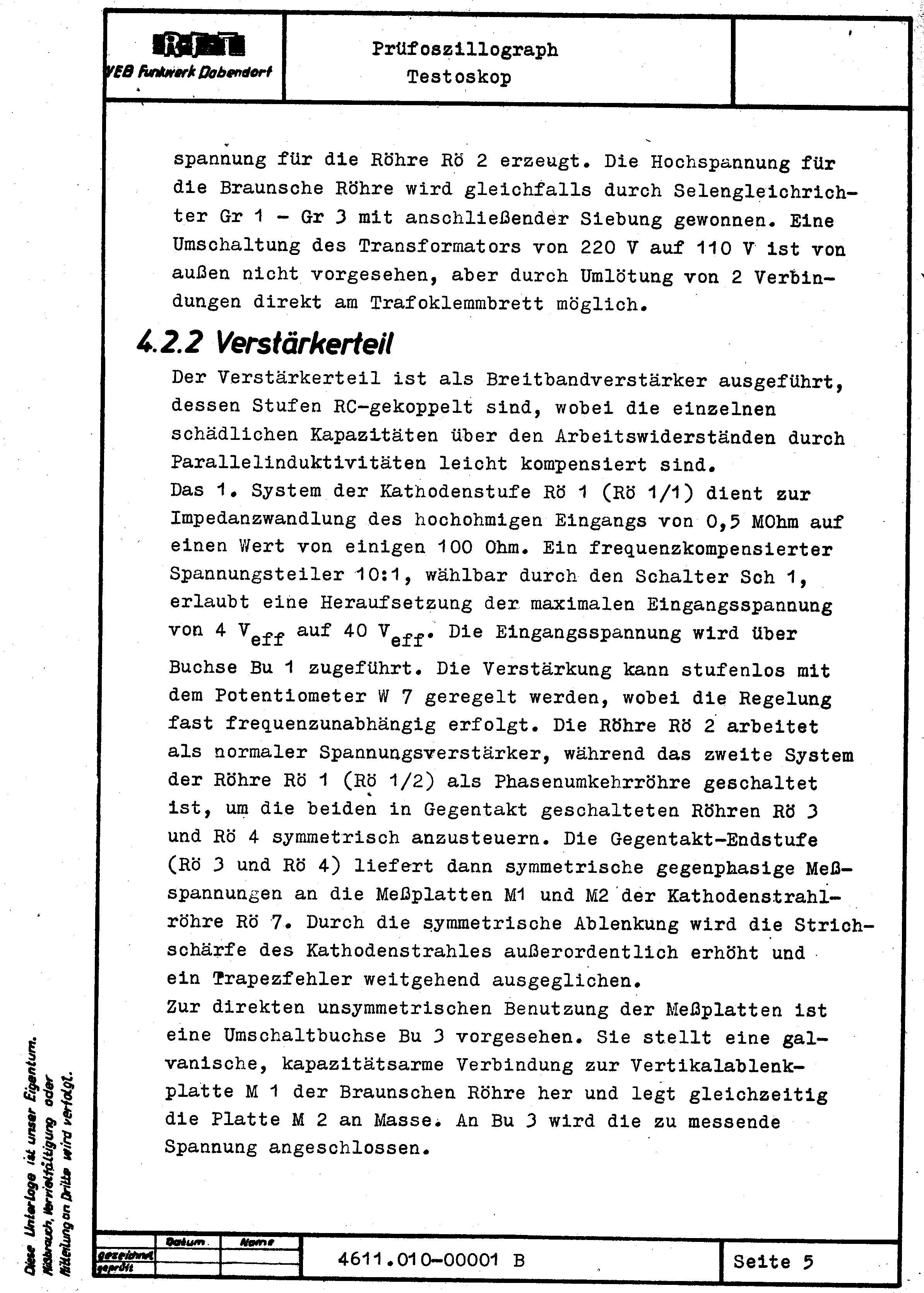 Dieser Artikel betrifft das Modell: Fernsehprüf-Oszillograph Testoskop (Funkwerk Dabendorf (VEB); Dabendorf (Ostd.))