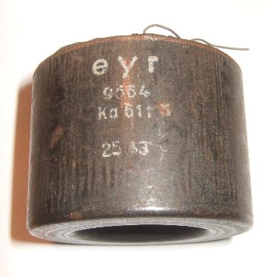 Wohl nach Kriegsende ist das Gerät "fachmännisch" umgebaut worden auf Gleichstrombetrieb, leider hat man dann auch den Netztrafo und den Ladekondensator beseitigt. Als Röhren steckten umgesockelte Wehrmachtsröhren im Gerät, eine LD 1 und eine Röhre ohne Bezeichnung. Beide Röhren zeigen ein großes G. Als Kondensator war ein Ring mit mehreren Drähten eingebaut, von dem ich annehme, daß es sich um einen Bombenzündkondensator aus WK II handelt. In der Funkgeschichte wurden diese Kondensatoren in einem älteren Heft behandelt, welches ich aber leider nicht mehr besitze. Außerdem sitzt eine kleine Drossel im Gerät mit ca. 600 Ohm, von der ich vermute, daß sie aus einem Funkgerät stammt.