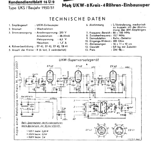 Metz Einbausuper UKS Ergaenzung zu den Daten des