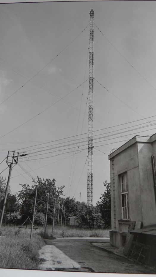 Der neue Sendemast im Jahre 1952, der provisorische Sender mit 25 KW Leistung wurde 1952 durch eine Endstufe mit 13 KW ersetzt, die neue Sendefrequenz ist 719 KHz