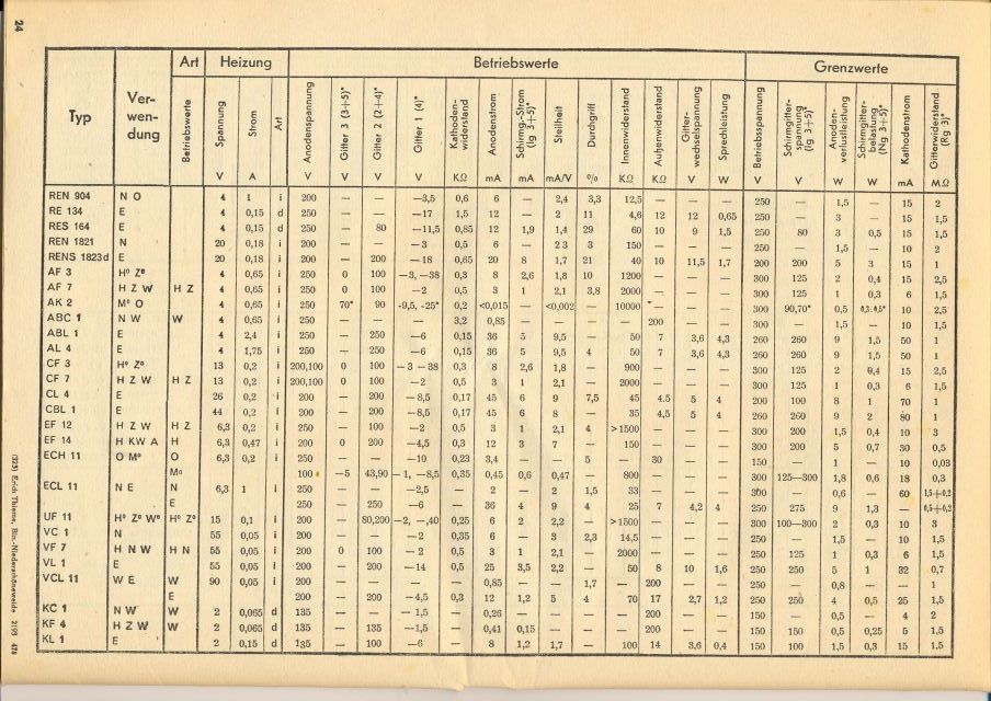 - Tabellarische Daten von Original- und Wehrmachtsröhren