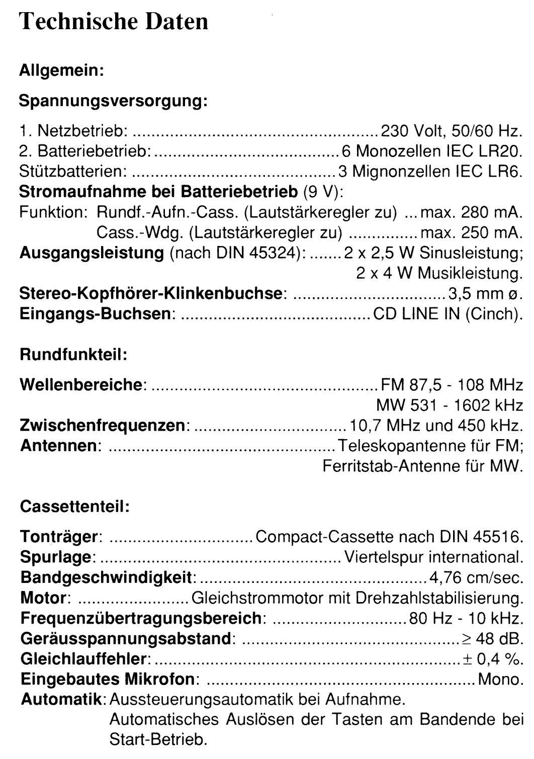 Der Wert 8,2 V war der richtige, vielen Dank nochmal. Es gab anscheinend 2 Geräte mit derselben Bezeichnung. Die Unterlagen von Herrn Heribert Jung sind wohl für ein Gerät mit 2 Kassettenlaufwerken und ohne erkennbaren Radioteil. Das Gerät was ich meinte, ist aber auch ein RR2000, hat aber ein Laufwerk und ein Radioteil(Stereo)(portables Gerät).