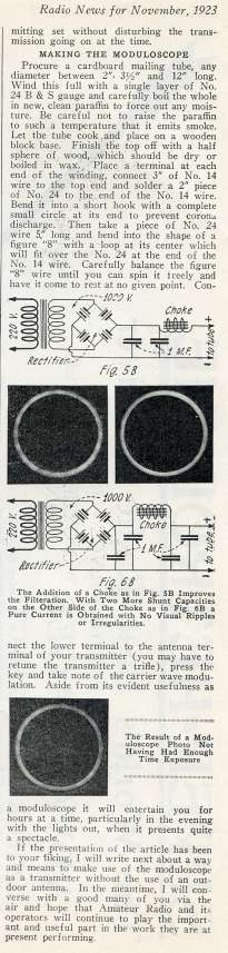 Philip Colston was so kind to send me some details of the build shown in QST June, 1923 which I put in big to the model page and here in the forum format of 600 (last = 570) pixels width. Philip informed me that there is also an article in the October 1924 issue of the French magazine La Science et la Vie: Le Curieux Modulascope Reinartz. The pictures are from the 1923 QST article.