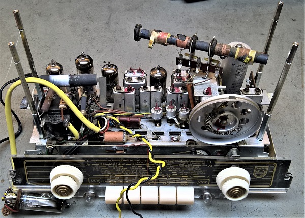 Das Gerät wurde als defekt verkauft, und tatsächlich war die Feinsicherung durchgebrannt. Bevor ich überhaupt dran dachte diese auszutauschen und das Gerät unter Spannung zu setzten habe ich alle Wickel - und Elektrolytkondensatoren überprüft. Interessanterweise sind nicht die Typischen Philips Teerkondensatoren verbaut worden, sondern ausschliesslich ERO und WIMA Typen. Es zeigte sich wieder einmal das alle Wickelkondensatoren (ausser Styroflex) Leckströme aufwiesen und ersetzt werden mussten.
