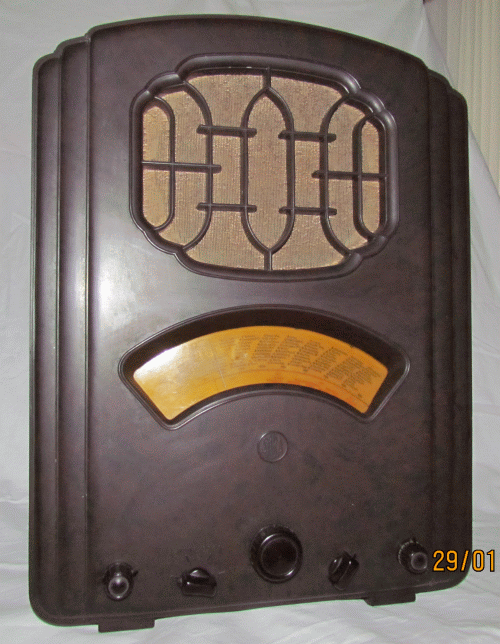 Die Eindrückstellen wurden mit Alleskleber gefüllt. Das fällt kaum auf. Das Gehäuse wurde mit Bakelitpolitur poliert und der Lautsprecher mit Wasser abgelöst, gereinigt und neu gespannt mit Kaltleim wieder fixiert. Die Rückwand wurde mit einem Segment Pertinax in brauner Farbe ausgefüllt. Alles in allem hat man eine gute Funktion und ein gutes Aussehen. Ladenneu soll es nicht sein.