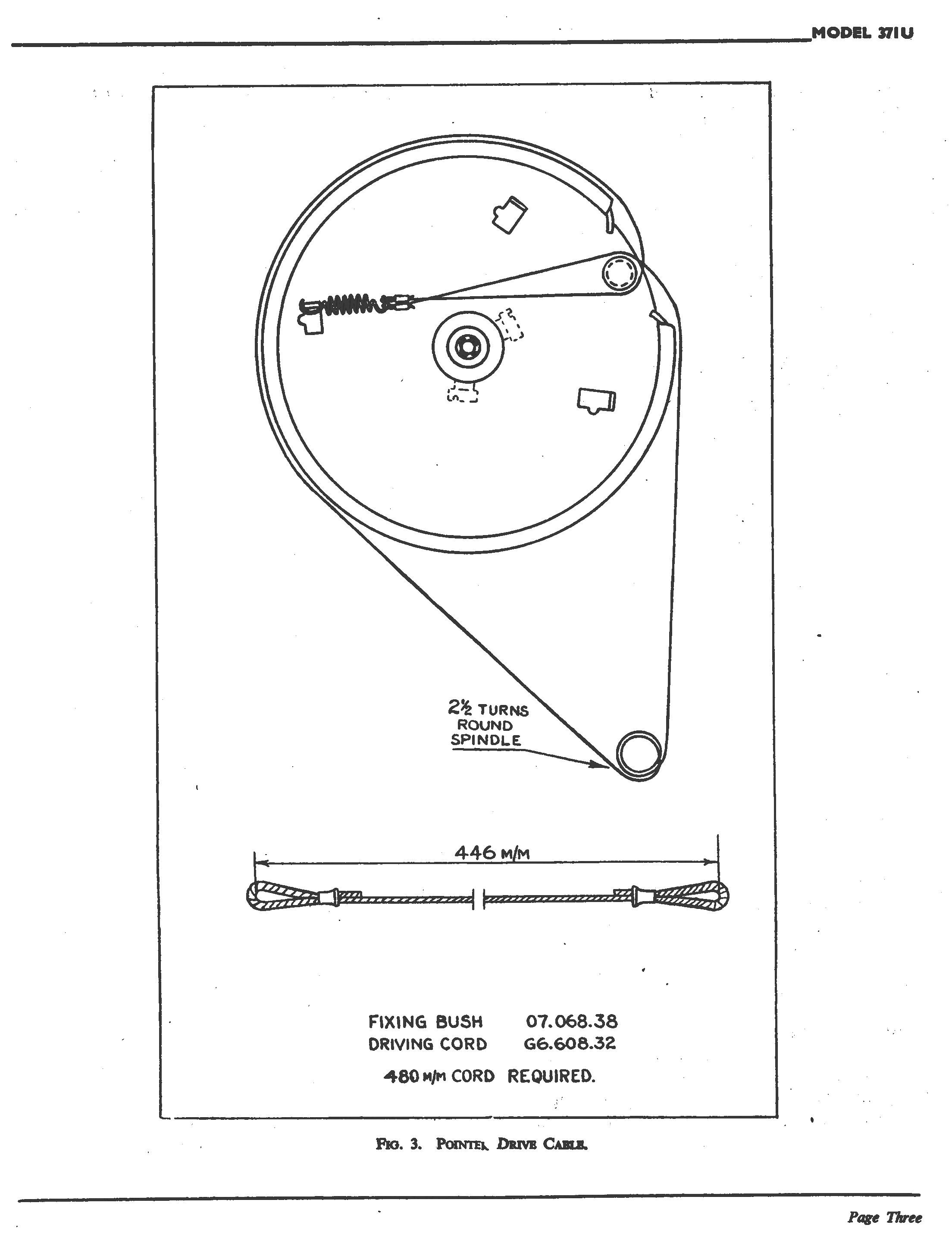 Der Antrieb zum Skalenzeiger erfolgt über ein Stahlseil (cable acier), was vom Seilrad über eine Umlenkrolle oben am Skalenhintergrund auf die Zeigerachse führt. Offensichtlich steht der Zeiger unter Federspannung, da es keinen "Rückweg" für dieses Anzeigeseil gibt.