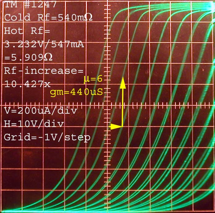 Note that tube #1247 reached 2mA of saturation at the top of the plot with less resistance increase than tube #1248.