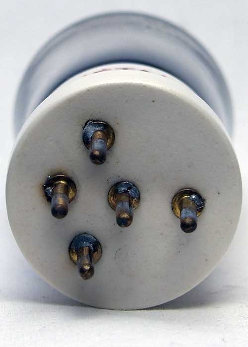 Diesen Porzellansockel mit Kragen verwendete Metal auch bei einer für Wechselstromheizung geeigneten direkt geheizten Version der "MICRO-METAL 6/100 AMP. RM" (Tyne, Saga of the Vacuum Tube, p.400).