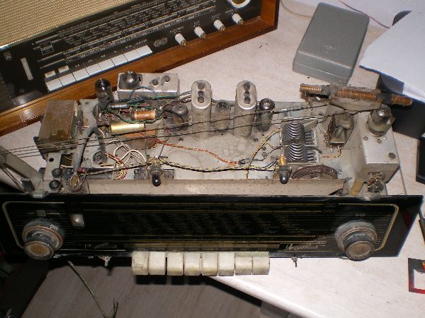 this 7-tube radio chassis was made by Telefunken in the model year 1956/67. Has been used e.g. in the model Telefunken Concertino 6 and the similar AEG model 4075WD.