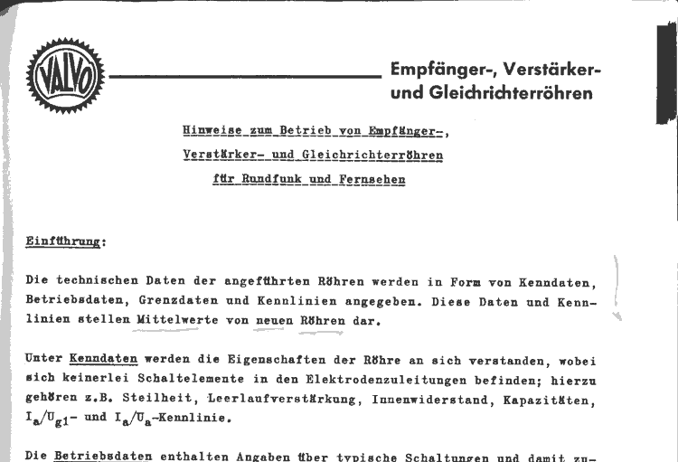 Daher sagen Telefunken und Siemens, die Kenndaten entsprechen einer fiktiven Röhre. Im VALVO Datenbuch steht: Die technischen Daten der aufgeführten Röhren werden in Form von Kenndaten, Betriebsdaten, Grenzdaten und Kennlinien angegeben.