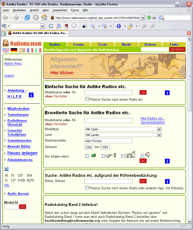 die Suchseiten sehen sehr ähnlich aus, der Abstand zwischen der Titelleiste mit den Reitern und dem Login / "allgmein interessiert" ist kleiner, die Schrift im grünen Feld "Rundfunkgeräte und Apparate" eher besser lesbar und die Schrift unten im Text etwas grösser geworden,