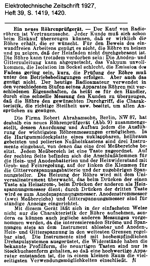 Elektrotechnische Zeitschrift, 1927, Heft 39, Seite 1419, 1420.