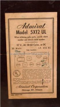 Admiral (brand) Continental Radio & Television Co.; Chicago, IL