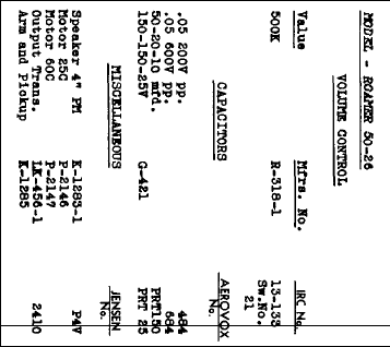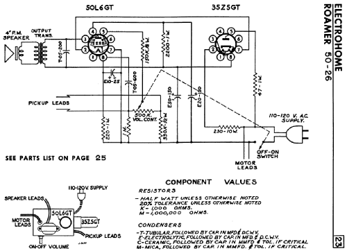 The Canadian Electrohome model Roamer 50-26 is a 2-tube record player. For 25 or 60 Hz depending on nameplate rating.