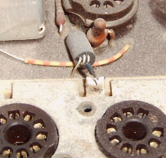 Zwischen den beiden EL84-Fassungen in diesem Gerät ist ein Masseanschluss mit einem Rest von einem abgeknipsten Drahtstück (siehe Bild) und ich würde gerne wissen wohin dieser Draht ehemals geführt hat oder an was das andere (fehlende) Ende angeschlossen war.