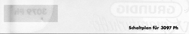Der Grundig Reparaturhelfer besteht aus einem 2-seitig bedruckten Faltblatt. Auf dem Titel steht "3079Ph". Auf der Schaltung steht "Schaltplan für 3097Ph". Der Plan ist aber für 3079Ph wie ein Vergleich mit einem anderen Druck zeigt.