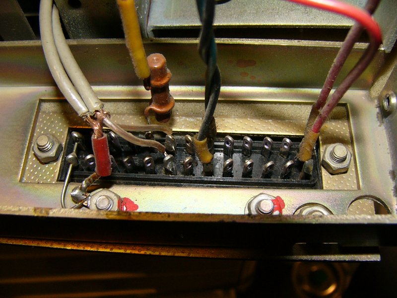Leider gehen alle drei RE 822-2, die ich mittlerweile habe, bisher nicht. Die Skalenbeleuchtung geht an, aber das Feldstärkeinstrument zuckt nicht und am Ausgang (für das Tonband, die Anschlußcharakterristik des Leistungsverstärkers ist mir unbekannt) kommt nicht heraus. Ist das Kontaktpaar 6a/6b am rechten Anschluß mit bisher unbekannter Funktion vielleicht ein Anschluß für einen externen Ein/Aus-Schalter?