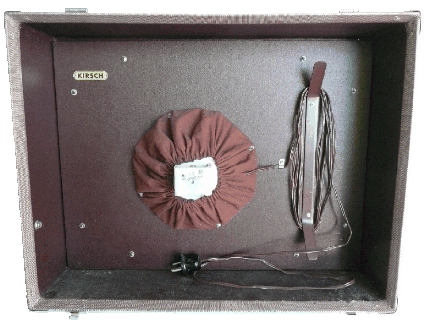 Guten Tag, zuletzt brachte mir ein Freund einen  Kirsch Koffer, mit der Bezeichnung ST6, zur Verstärker Reparatur. Es ist 1 Lautsprecher in dem Deckel drin. Bj. ca. 1957.