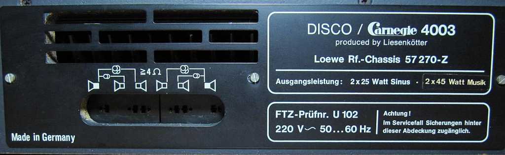 - Modelo: Disco Carnegie 4003 Ch= Loewe-Opta 57270-Z [Standgerät] - Liesenkötter, Westfalen